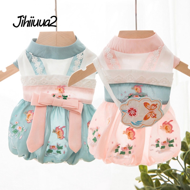Amazon Com Wank Pet Costume Lovely Cat Clothes Chinese Style Embroidered Chiffon Hanfu Dress Adorable Dog Puppy Dresses For Summer Pet Supplies