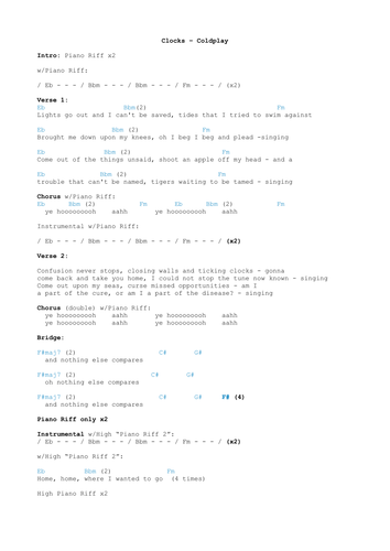 Clocks Sheet Music Coldplay Guitar Chords Lyrics